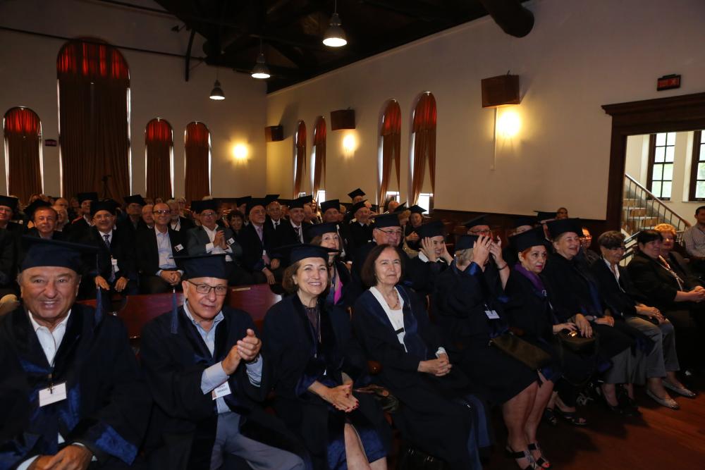 50’nci yılını kutlayan mezunlara kendi dönem hocalarından Prof. Dr. Mustafa Dilber, Prof. Dr. Özer Ertuna, Prof. Dr. Semih Tezcan ve Prof. Dr. Oya Başak da eşlik etti. Kep ve cübbeleriyle mezuniyet töreni atmosferini yeniden canlandıran mezunlar, 50’nci yıl sertifikalarını kendi hocalarının elinden aldı.