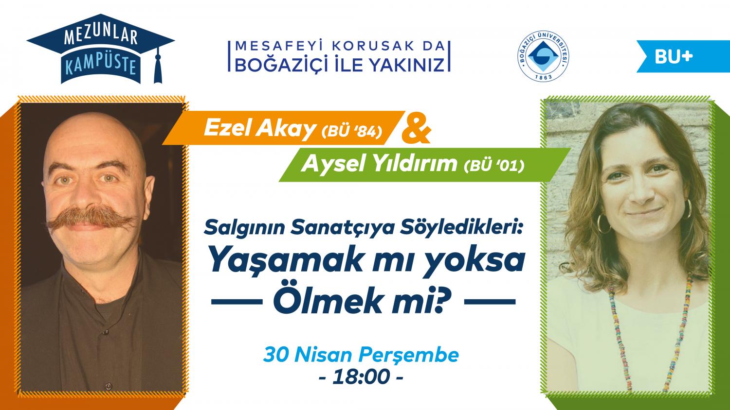 '84 mezunumuz yönetmen Ezel Akay ve '01 mezunumuz yazar ve oyuncu Aysel Yıldırım ile salgının sanat ve sanatçıya etkilerini konuşacağız.