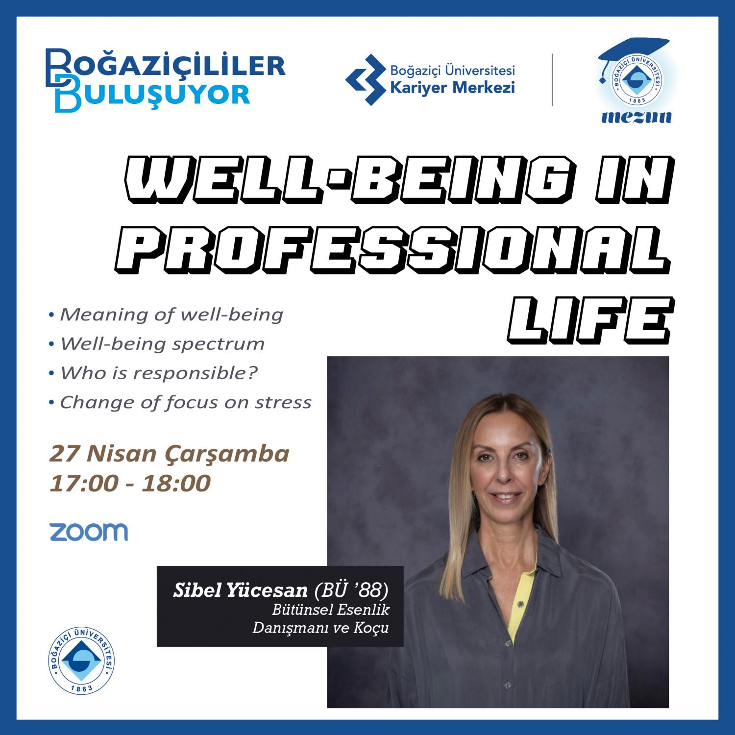Boğaziçi Üniversitesi Kariyer Merkezi ve Mezunlar Ofisi iş birliği ile mezun ve öğrencilerimizi bir araya getiren seminer serisi Boğaziçililer Buluşuyor devam ediyor! Mezunlarımızın kişisel ve profesyonel deneyimlerini paylaşarak kariyer yolculuklarımızda yol gösterici bilgiler sunacağı buluşmalara mezunumuz Sibel Yücesan (BÜ'88) ile devam ediyoruz. 27 Nisan 2022 Çarşamba günü saat 17.00'da "Well-being in Professional Life" başlıklı sunum ile Zoom platformunda buluşuyoruz.